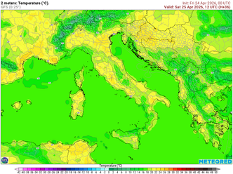 Nord: Sulle regioni settentrionali persisterà un campo di alta pressione che garantirà un’atmosfera stabile. Il cielo sarà per lo più sereno, con locali addensamenti solo lungo alcuni versanti alpini nelle ore più calde ma senza fenomeni di rilievo. I venti saranno generalmente deboli e a regime variabile, con rinforzi moderati in alcune valli o sulle coste esposte; i mari risulteranno calmi o poco mossi. Le temperature subiranno una moderata escursione diurna: minime in genere comprese tra 7°C e 12°C nelle valli, massime attese tra circa 17°C sulla riviera ligure e 25–26°C nelle pianure; valori localmente superiori, fino a 27°C, sono possibili in aree come la conca di Bolzano.