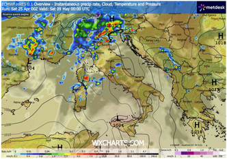 Questo scenario rappresenta una configurazione atmosferica coerente con la climatologia del mese di maggio, periodo di transizione tra primavera ed estate. Le condizioni descritte, caratterizzate da elevata variabilità e da fenomeni convettivi anche intensi, sono tipiche di questa fase stagionale e contribuiscono a ristabilire il bilancio pluviometrico dopo una prima parte della primavera avara di precipitazioni.