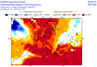 In questo contesto, le ondate di calore assumono una valenza assimilabile a eventi di maltempo, per gli effetti diretti e indiretti che possono produrre: stress termico sulla popolazione, aggravamento delle condizioni di siccità e aumento del rischio di fenomeni meteorologici severi. È tuttavia fondamentale sottolineare che si tratta di proiezioni stagionali, utili a delineare tendenze generali ma non idonee a fornire indicazioni puntuali su scala locale o temporale di dettaglio.
