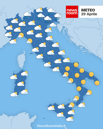 Italia – Per mercoledì 29 aprile 2026 è attesa un’ulteriore flessione della pressione sull’Italia, con atmosfera progressivamente più instabile. Il quadro sarà dominato da nuvolosità estesa e compatta soprattutto sulle regioni centro-settentrionali, mentre al Sud prevarranno condizioni più stabili e in prevalenza soleggiate. Le temperature resteranno miti, con valori più contenuti al Nord e punte più elevate tra Centro e Mezzogiorno. Le prime piogge interesseranno l’arco alpino, per poi estendersi in serata e nella notte verso la Pianura Padana, il medio Adriatico e il Lazio. Venti generalmente variabili, con rinforzi locali lungo i settori esposti.