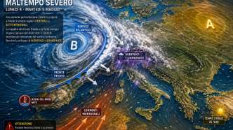 Tra lunedì 4 e martedì 5 maggio sono attesi fenomeni anche di forte intensità, con rischio concreto di nubifragi, grandinate e locali colpi di vento. Le aree maggiormente esposte risultano essere il Piemonte, la Lombardia, la Liguria e i settori tirrenici di Toscana e Lazio, dove non si escludono criticità idrauliche e allagamenti localizzati. Le precipitazioni potranno assumere carattere persistente e diffuso, segnando un netto cambio rispetto agli episodi instabili sporadici delle settimane precedenti.