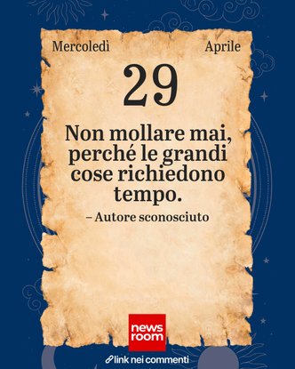 Mercoledì 29 Aprile 2026 si presenta come un giorno ricco di memoria e significato: la liturgia celebra una santa di eccezionale influenza storica, mentre l’almanacco evoca eventi che hanno segnato svolte decisive nel Novecento e oltre. I compleanni rivelano figure il cui talento ha attraversato decenni e generi: dall’arte alla musica, dallo sport alla recitazione. L’aforisma ci incoraggia con garbo a perseverare, rendendo questa data non solo una commemorazione, ma un invito alla riflessione e all’impegno duraturo. Per restare sempre aggiornato scarica GRATIS la nostra App!