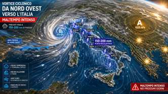 L’ingresso di masse d’aria fresche e instabili di origine oceanica favorirà la formazione di sistemi frontali organizzati, accompagnati da precipitazioni diffuse e persistenti, superando dunque la fase recente dominata da fenomeni convettivi isolati e di breve durata. Il Mediterraneo si troverà così al centro di un marcato gradiente termico e barico, elemento chiave per lo sviluppo di strutture depressionarie complesse.