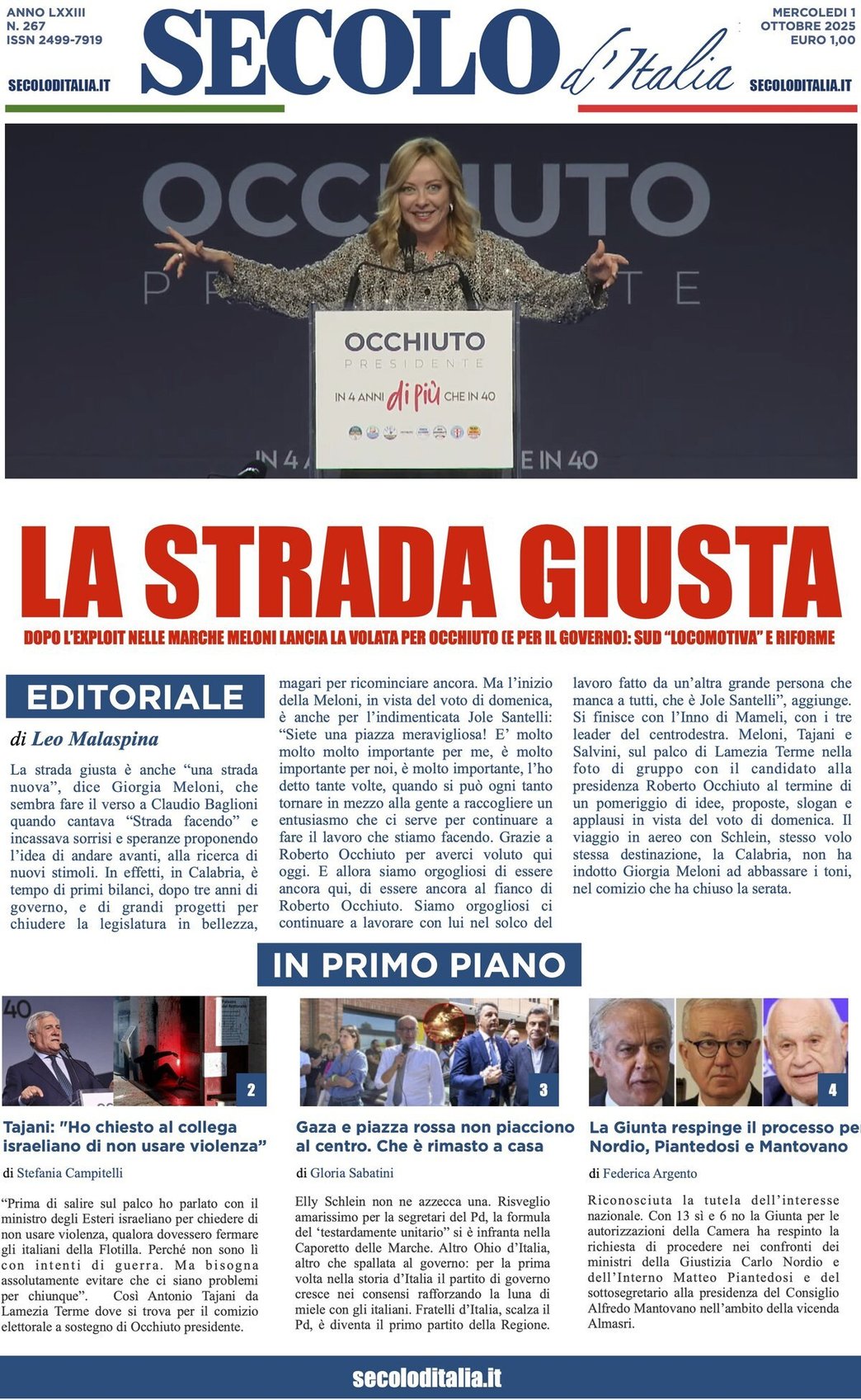 - LA STRADA GIUSTA - Dopo l’exploit nelle marche Meloni lancia la volata per Occhiuto (e per il governo): sud 'locomotiva' e riforme