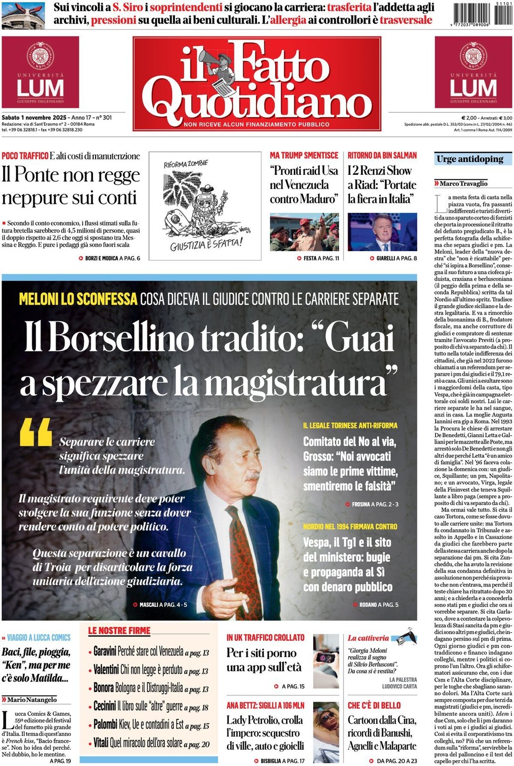 I Titoli Principali da Il Fatto Quotidiano di oggi: