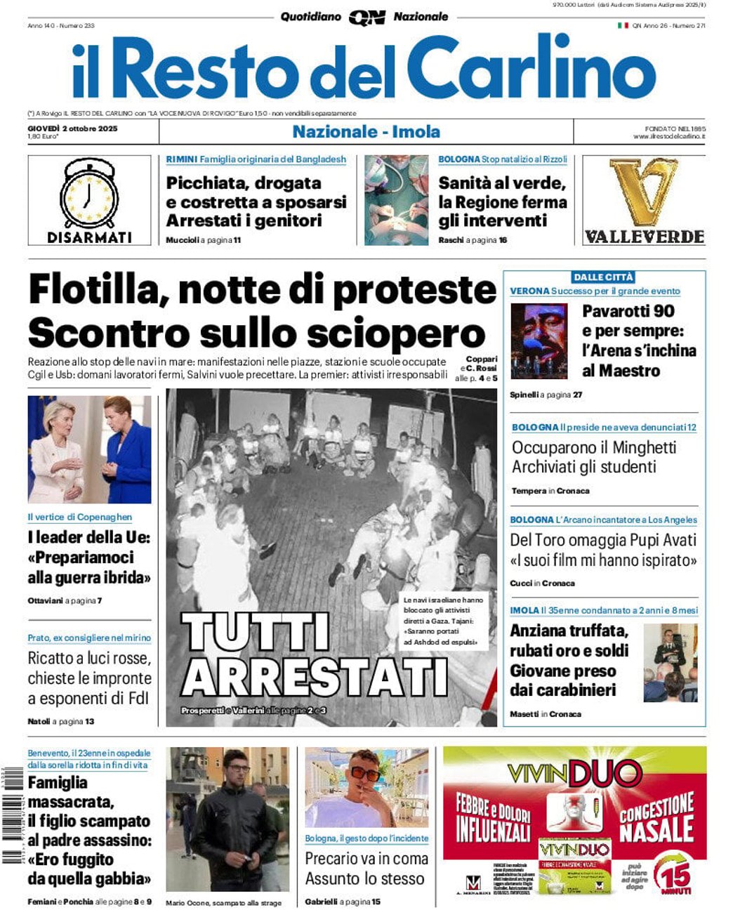 I Titoli Principali da Il Resto del Carlino di oggi: