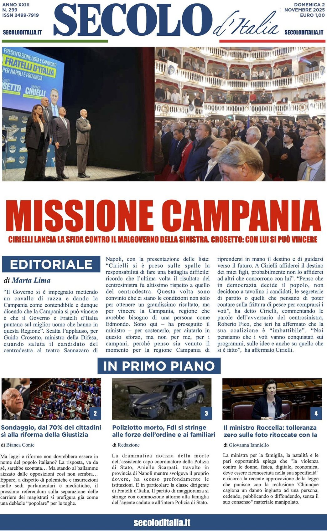 - MISSIONE CAMPANIA - CIRIELLI LANCIA LA SFIDA CONTRO IL MALGOVERNO DELLA SINISTRA. CROSETTO: CON LUI SI PUÒ VINCERE – Marta Lima