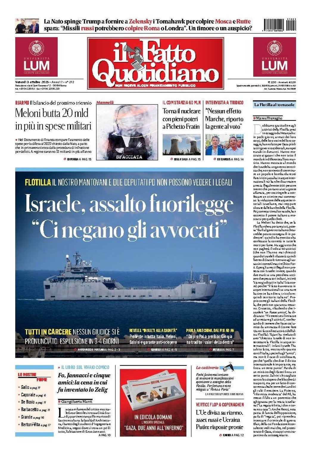 I Titoli Principali da Il Fatto Quotidiano di oggi: