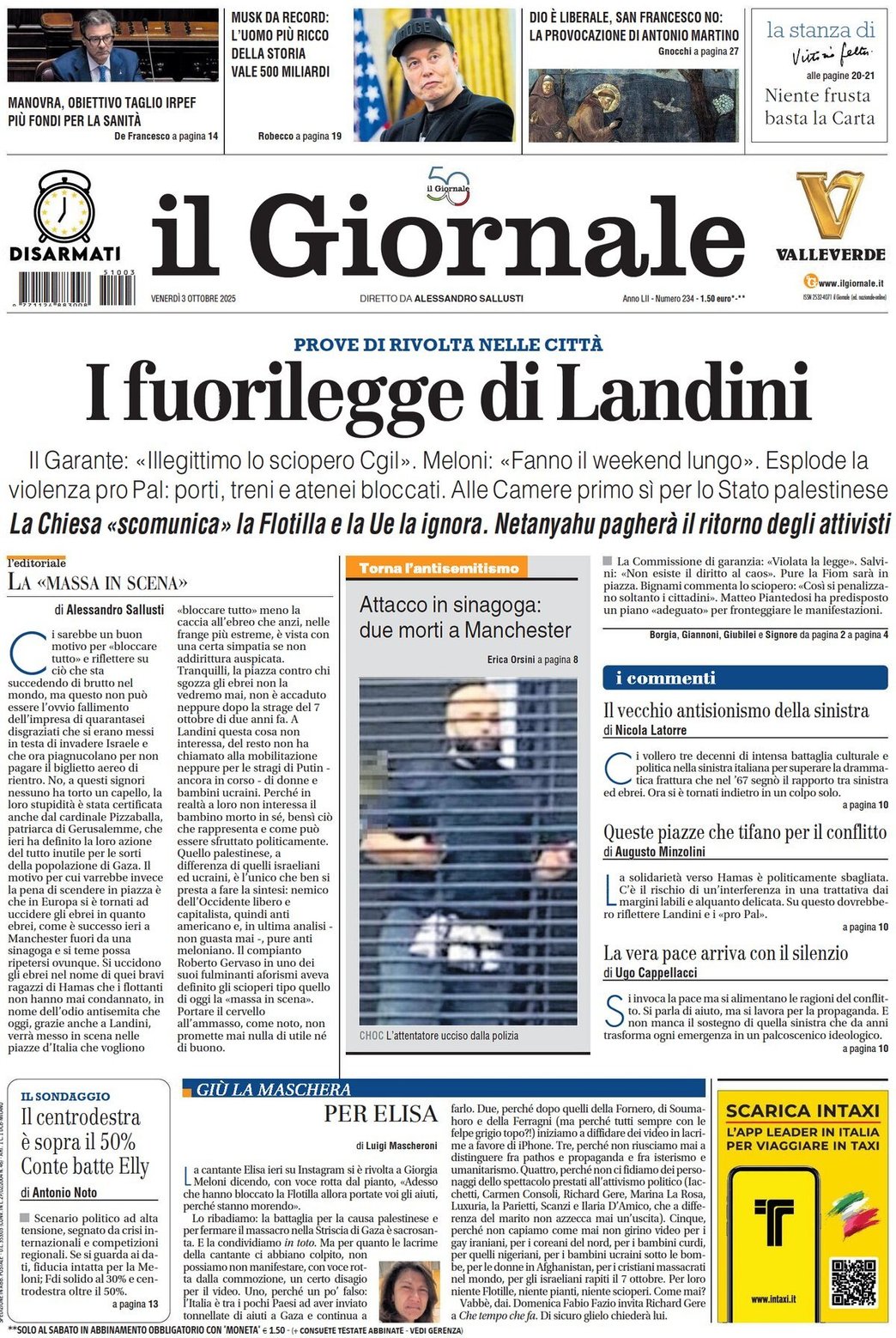 I Titoli Principali da Il Giornale di oggi: