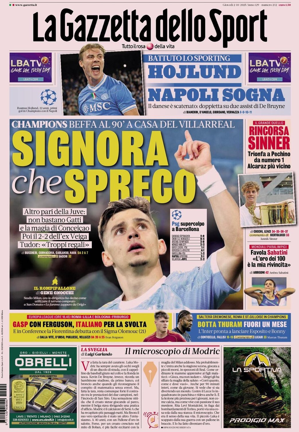 I Titoli Principali da La Gazzetta dello Sport di oggi: