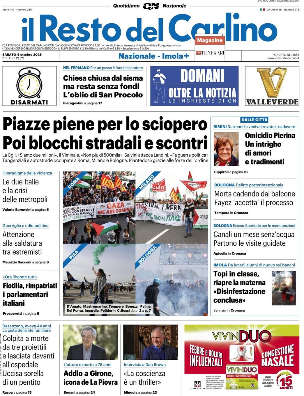 I Titoli Principali da Il Resto del Carlino di oggi: