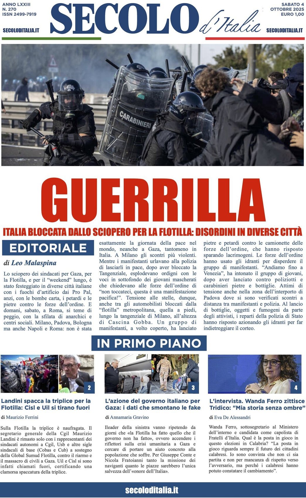 - GUERRIGLIA - Italia bloccata dallo sciopero per la flottiglia: disordini in diverse città – Leo Malaspina