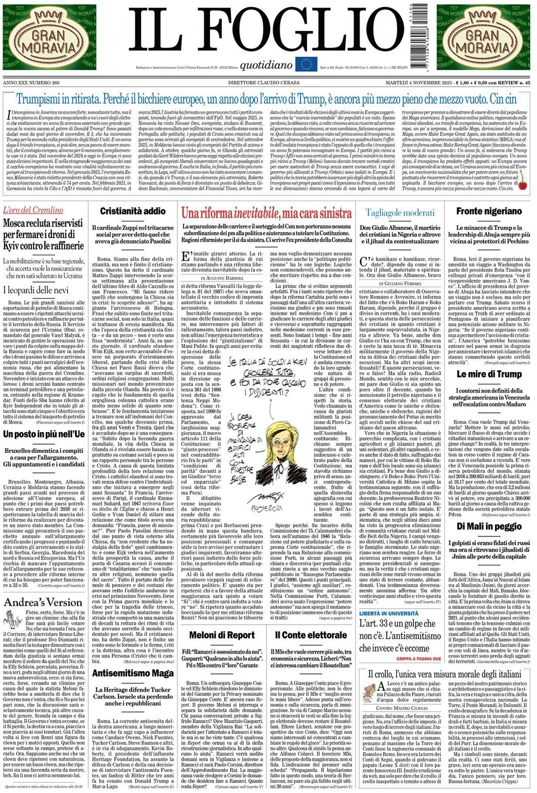 I Titoli Principali da Il Foglio di oggi: