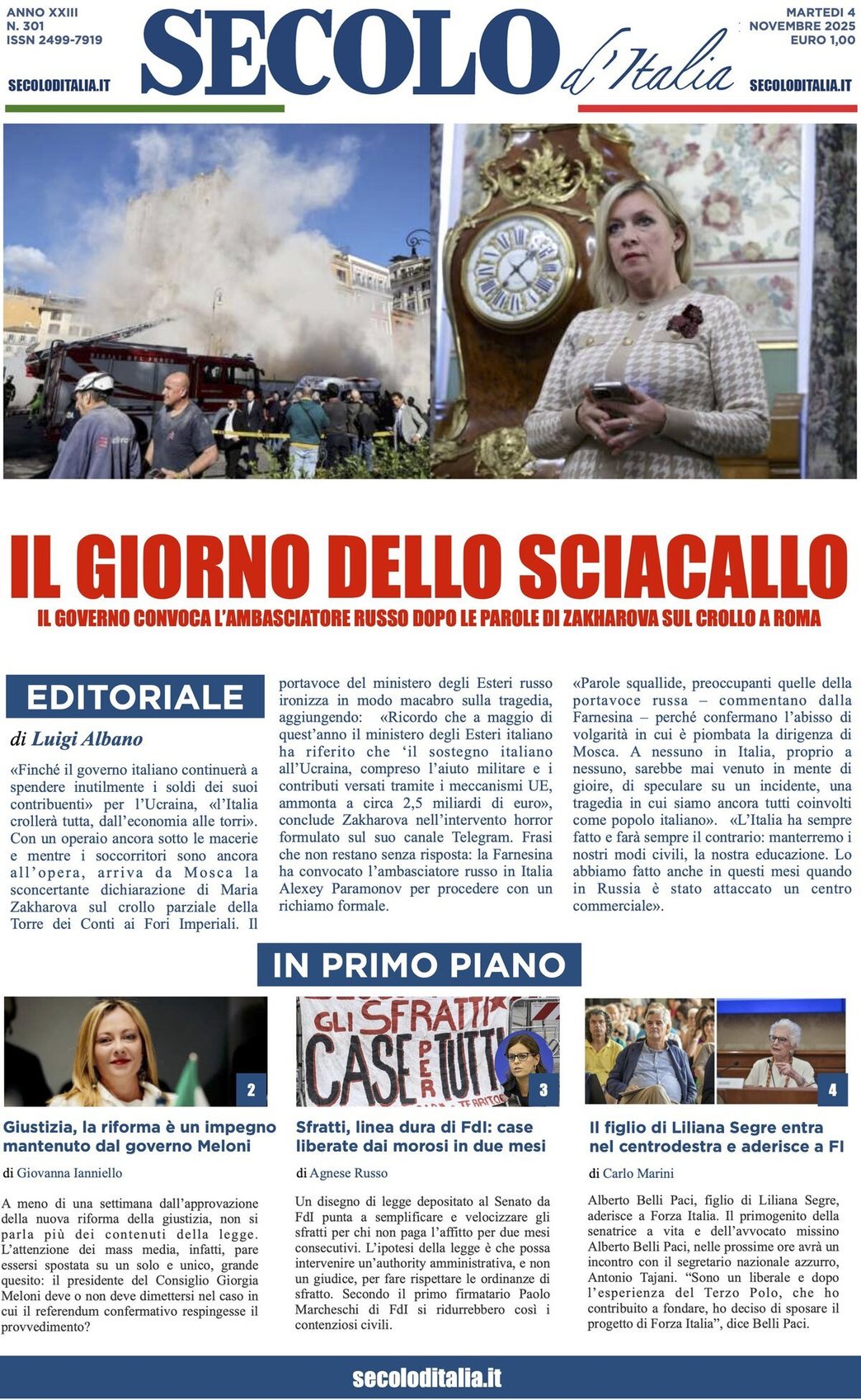 - IL GIORNO DELLO SCIACALLO - IL GOVERNO CONVOCA L'AMBASCIATORE RUSSO DOPO LE PAROLE DI ZAKHAROVA SUL CROLLO A ROMA – Luigi Albano