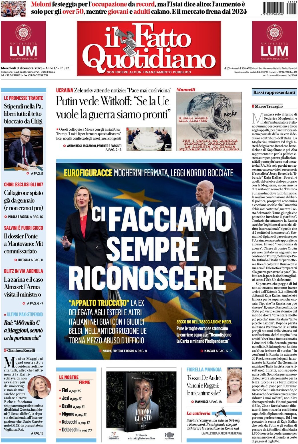 I Titoli Principali da Il Fatto Quotidiano di oggi: