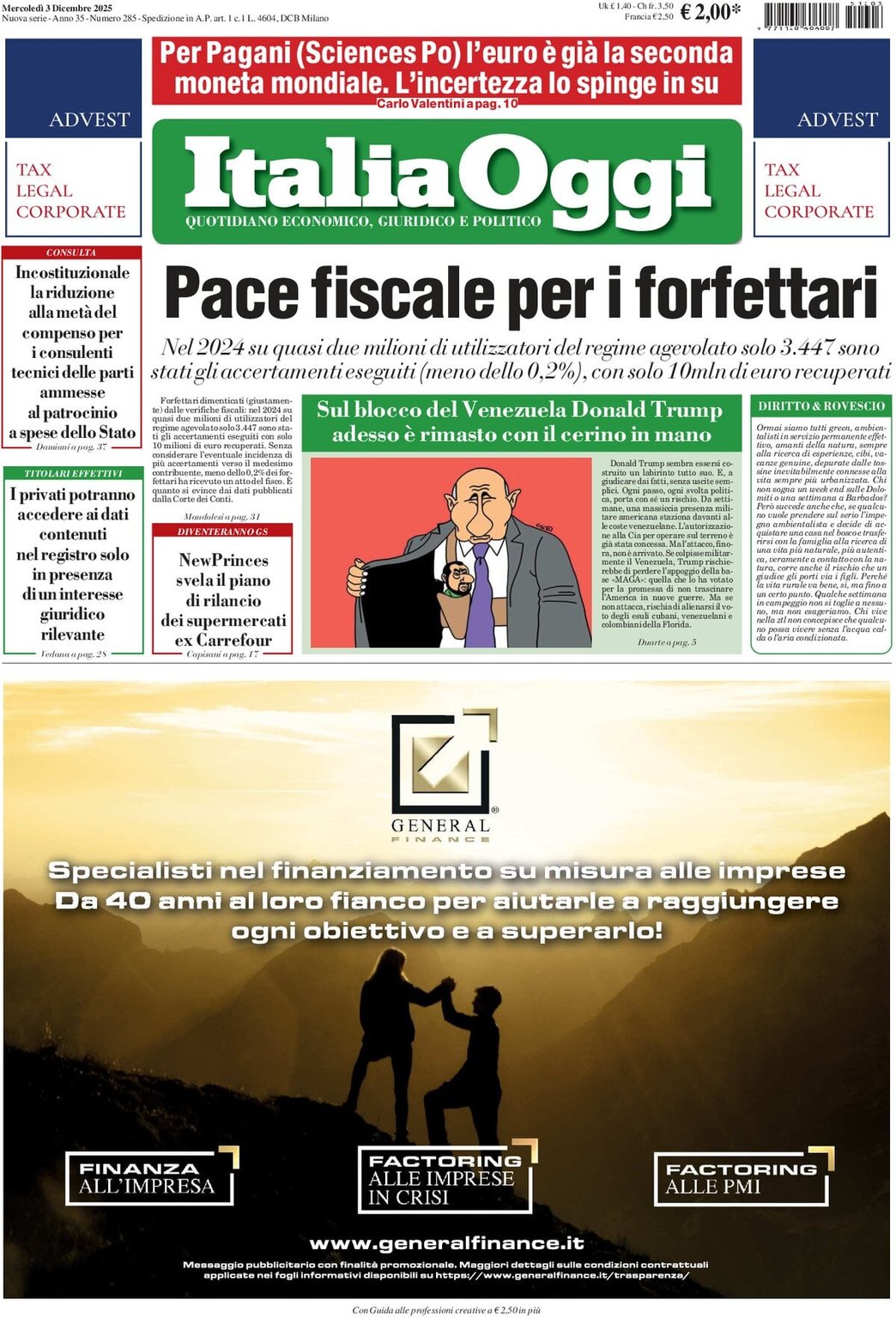 Prima Pagina Italia Oggi di oggi, Giovedì 4 Dicembre 2025