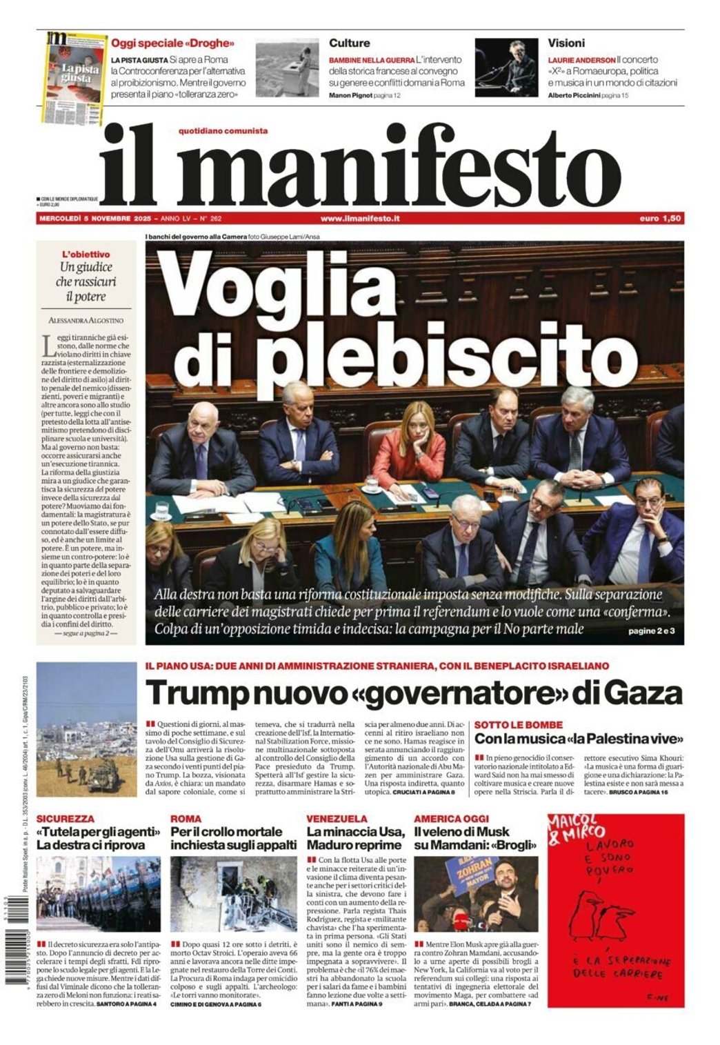 I Titoli Principali da Il Manifesto di oggi: