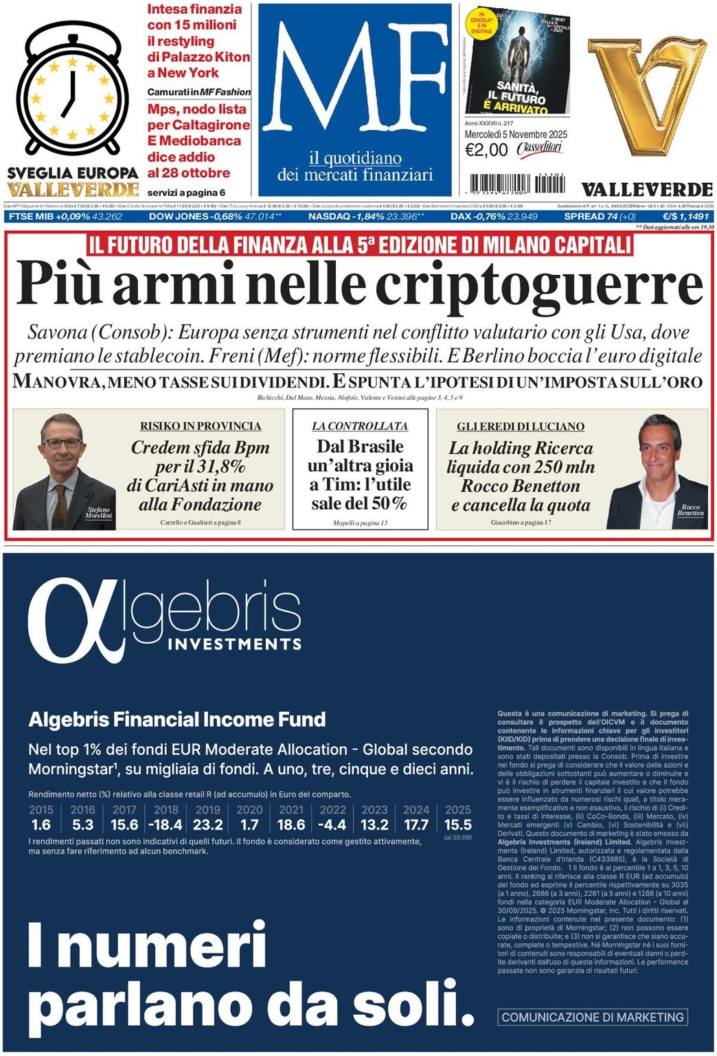 I Titoli Principali da Milano Finanza di oggi: