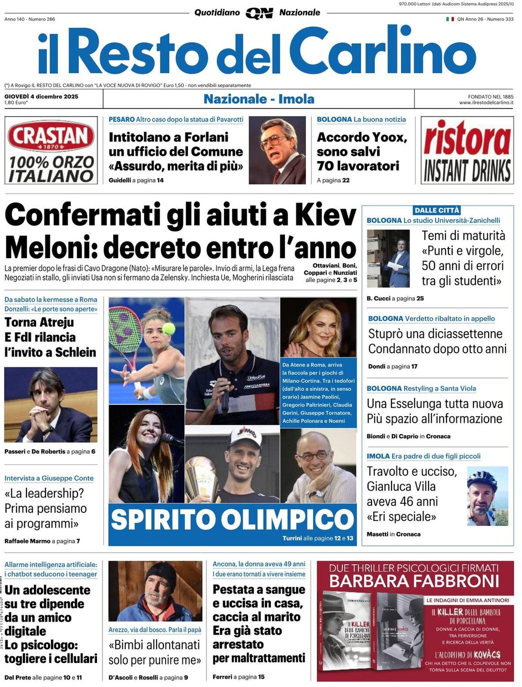I Titoli Principali da Il Resto del Carlino di oggi: