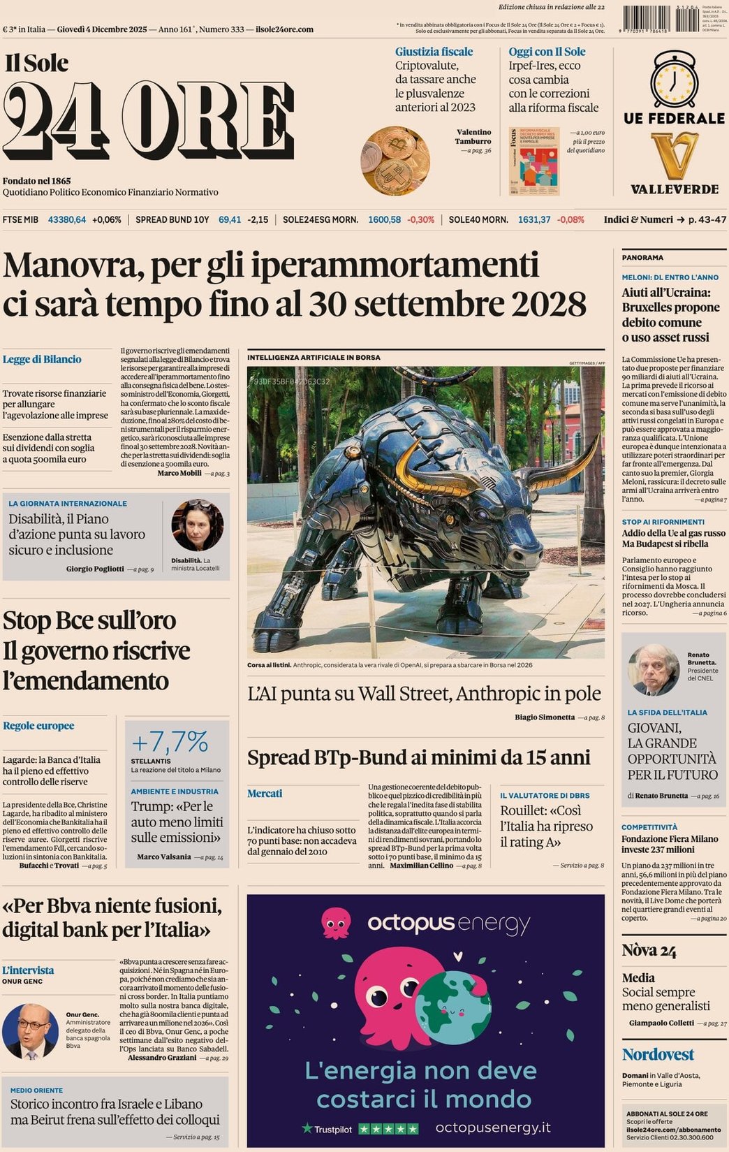 I Titoli Principali da Il Sole 24 Ore di oggi: