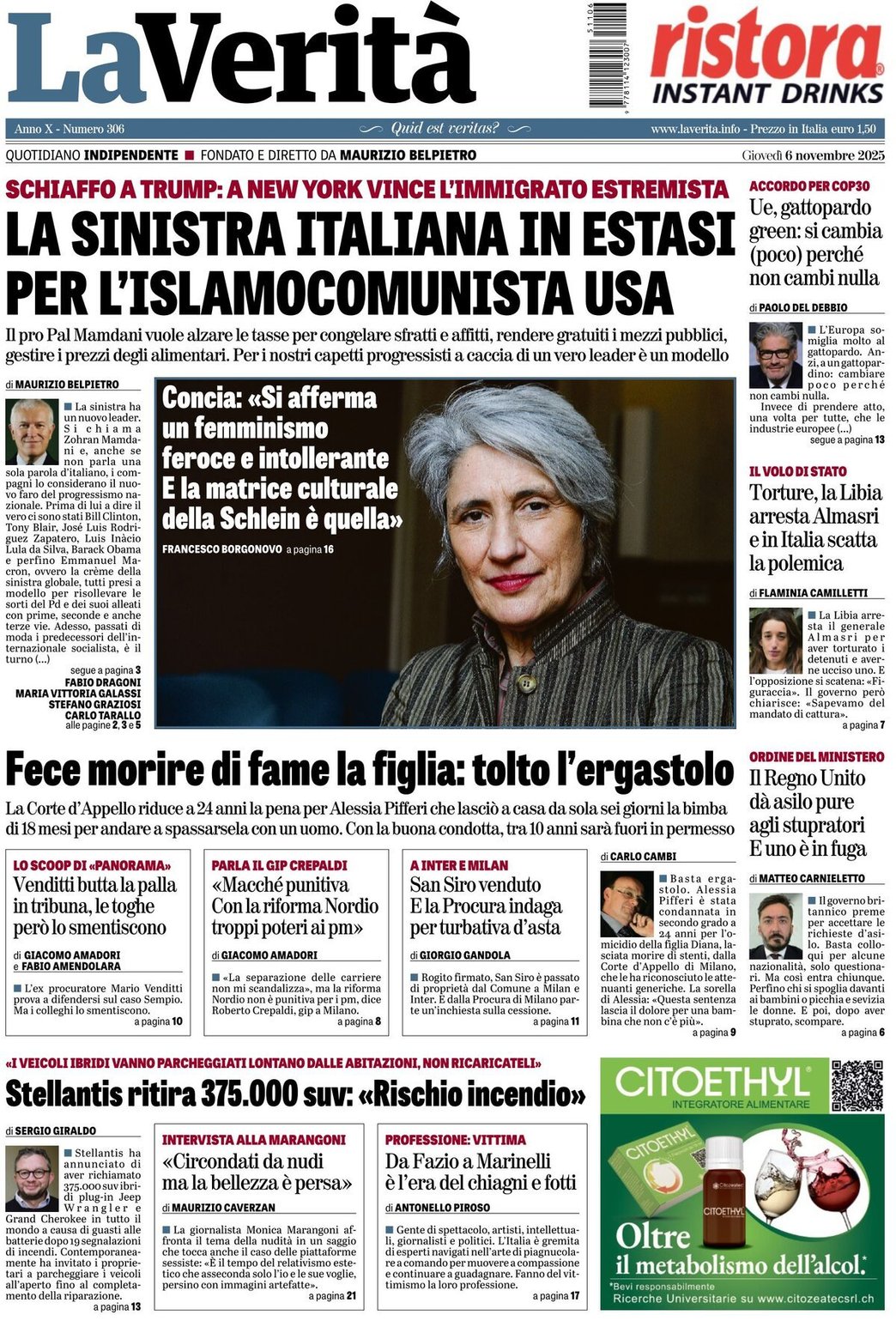 I Titoli Principali da La Verita di oggi: