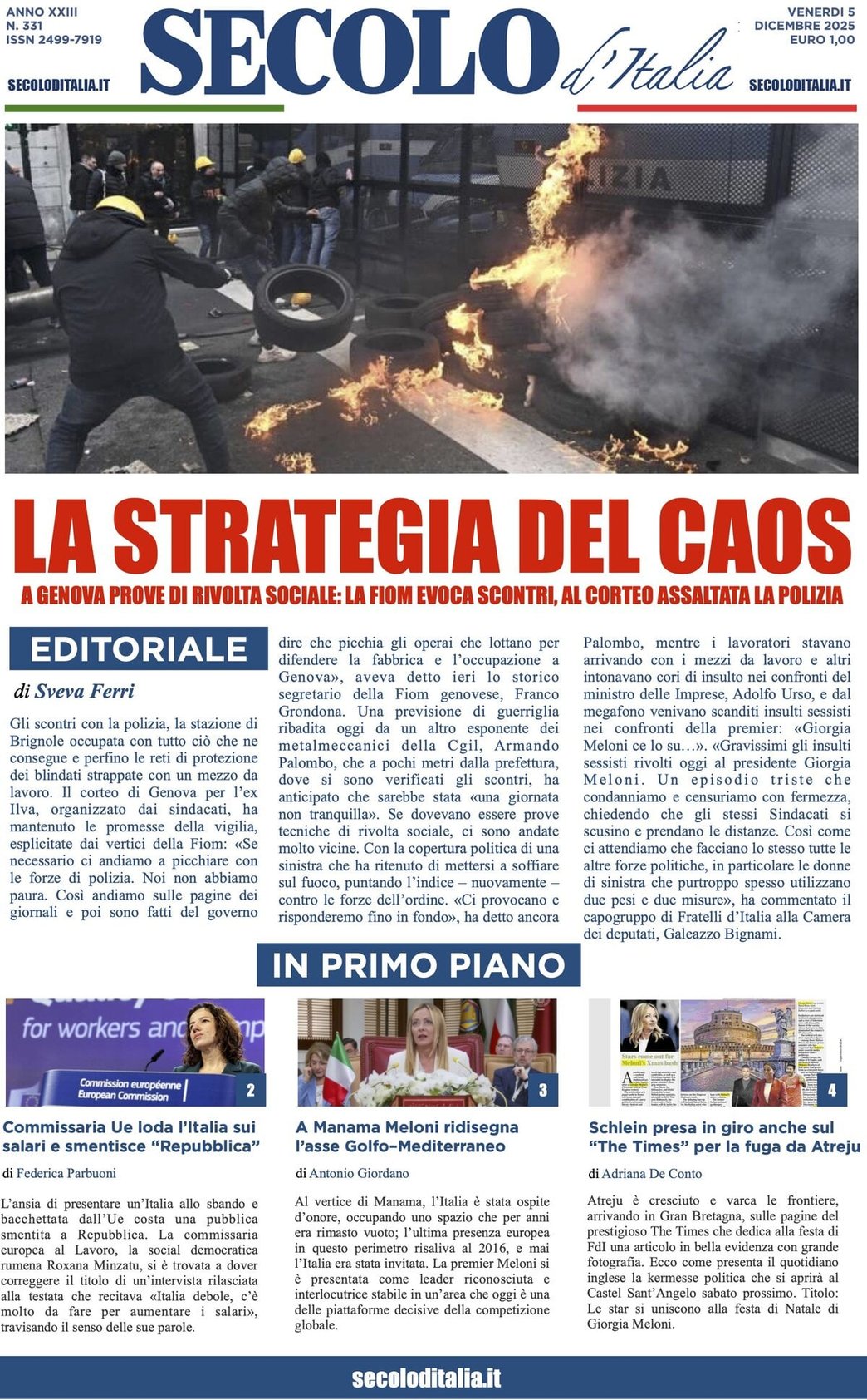 I Titoli Principali da Secolo d'Italia di oggi: