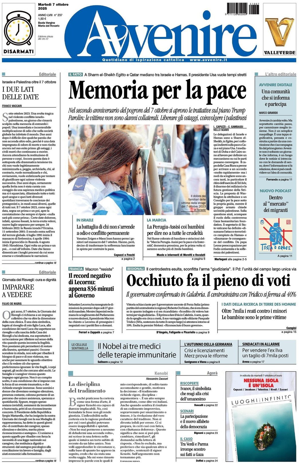 - Memoria per la pace - Nel secondo anniversario del pogrom del 7 ottobre si aprono le trattative sul piano Trump Parolin: le vittime non sono danni collaterali – Capuzzi e F. Gambarini