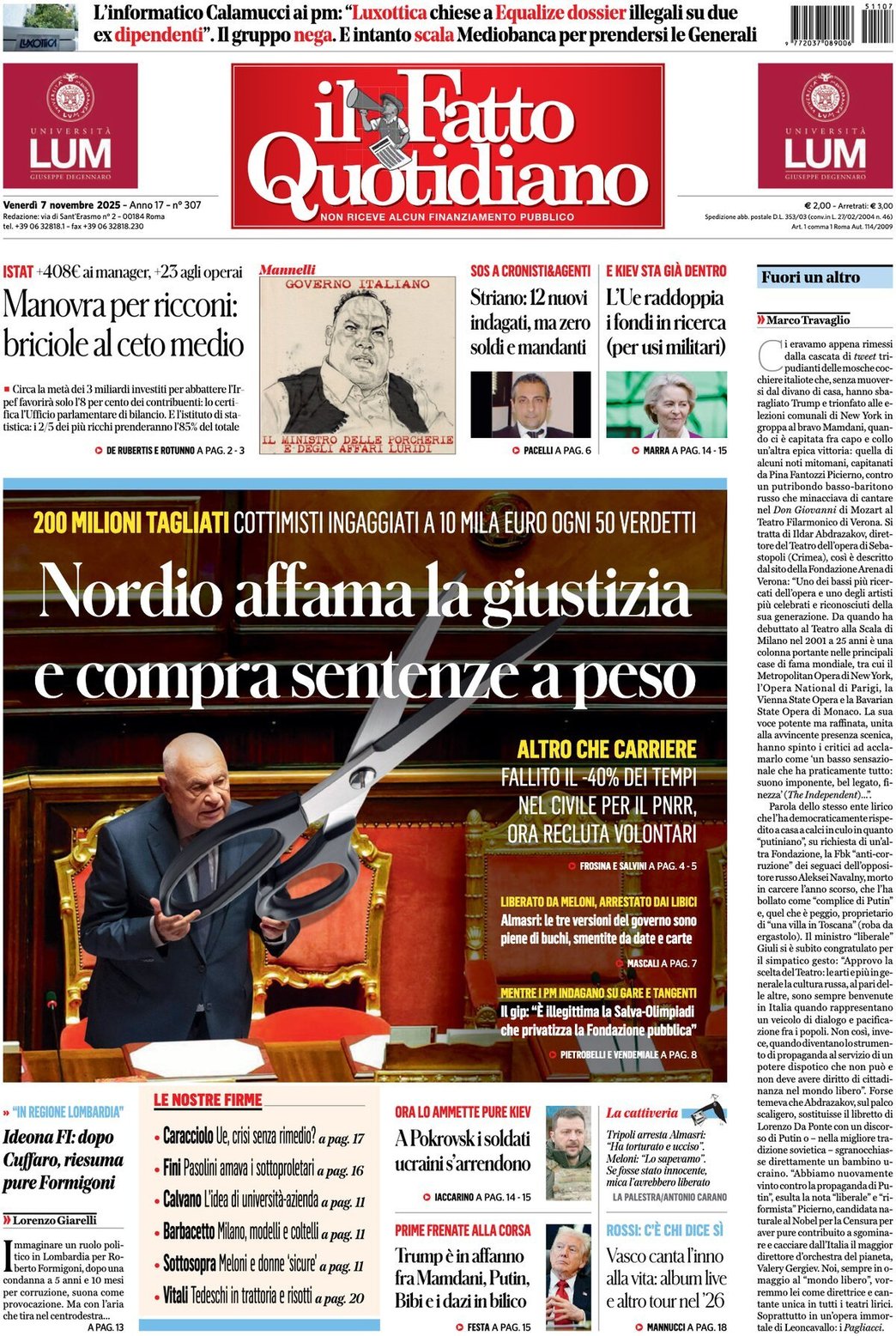 I Titoli Principali da Il Fatto Quotidiano di oggi:
