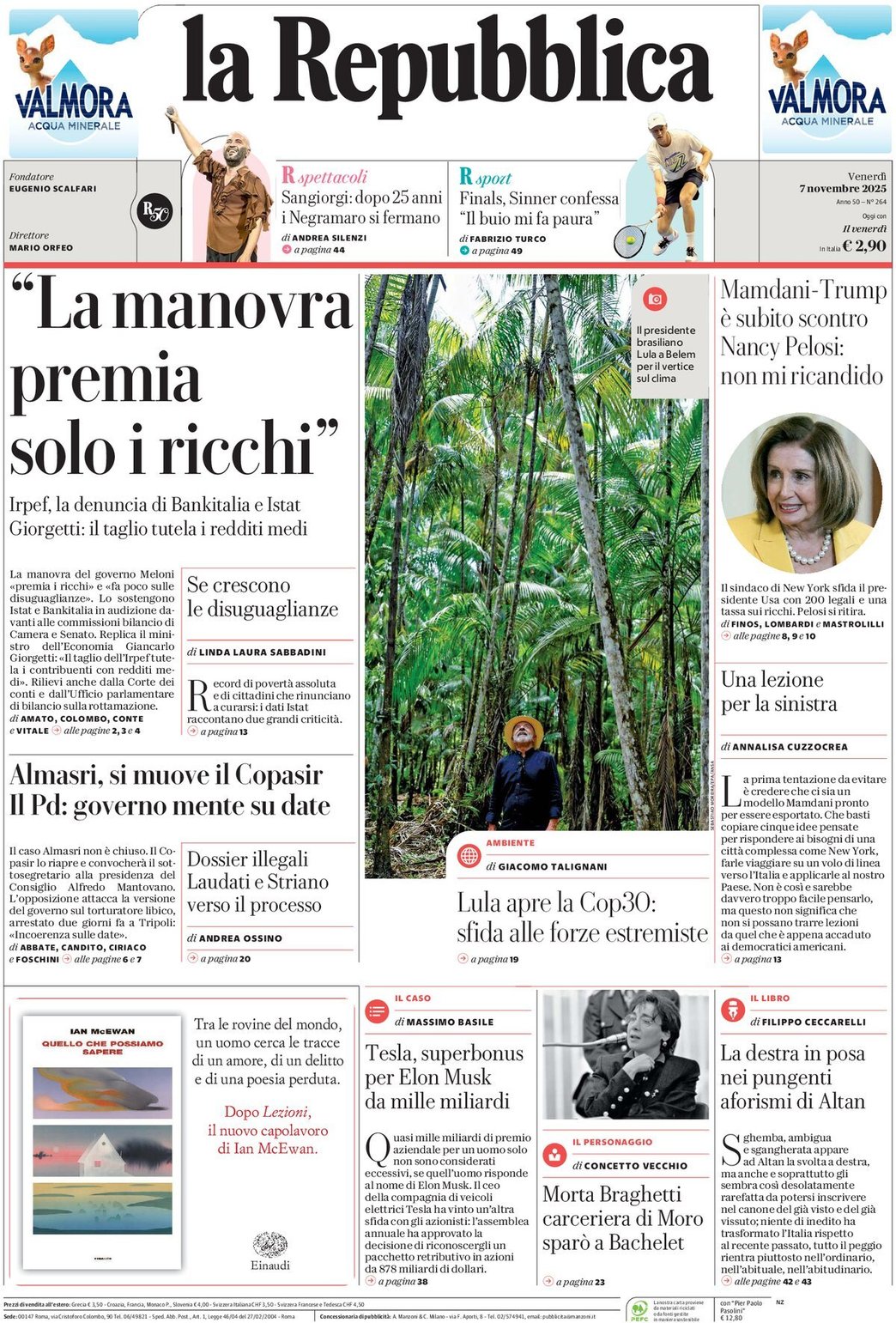 I Titoli Principali da La Repubblica di oggi: