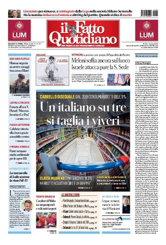 La giornata odierna si dipana sotto il segno di tensioni e inquietudini che attraversano diverse sfere della società e della politica. Su Il Fatto Quotidiano, emerge con forza il peso della crisi economica che attanaglia la classe media: un italiano su tre è costretto a ridurre gli acquisti di cibo, segnando un dramma dalle ripercussioni sociali profonde, mentre tensioni politiche si accendono, con Meloni che continua a soffiare sul fuoco della controversia, e persino la Santa Sede coinvolta negli attacchi israeliani. Nel frattempo, la rissa interna al centrodestra si infiamma anche intorno a una vicenda apparentemente minore, quella della mozzarella di Lollo, che diventa un simbolo delle divisioni in seno a FdI.