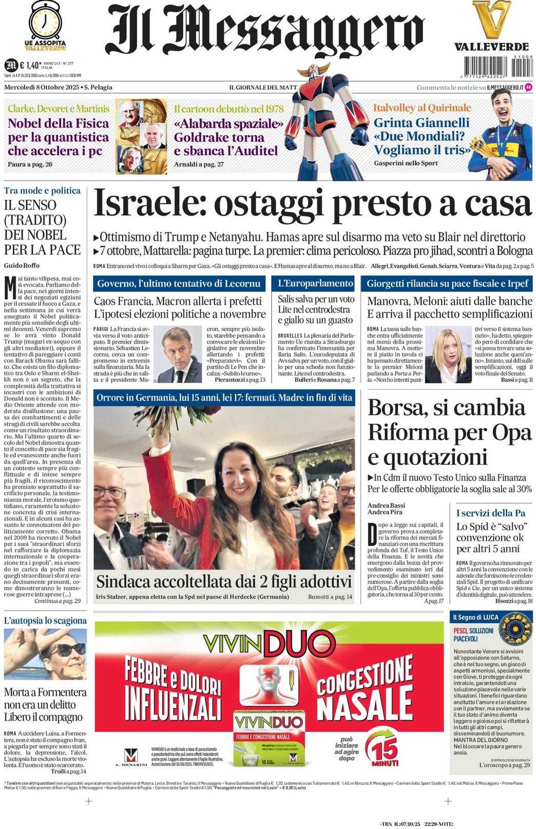 - Israele: ostaggi presto a casa - Ottimismo di Trump e Netanyahu. Hamas apre sul disarmo ma veto su Blair nel diretto 7 ottobre, Mattarella: pagina turpe. La premier: clima pericoloso.
