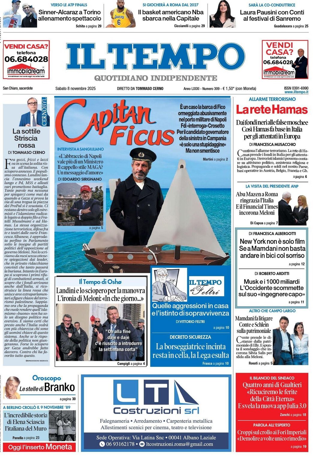 I Titoli Principali da Il Tempo di oggi: