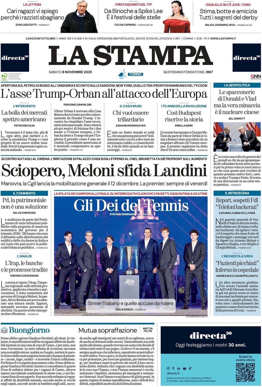 I Titoli Principali da La Stampa di oggi: