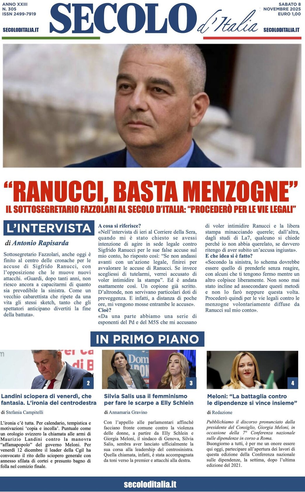 - Ranucci, basta menzogne - Il sottosegretario Fazzolari al Secolo d'Italia: “Procederò per le vie legali”