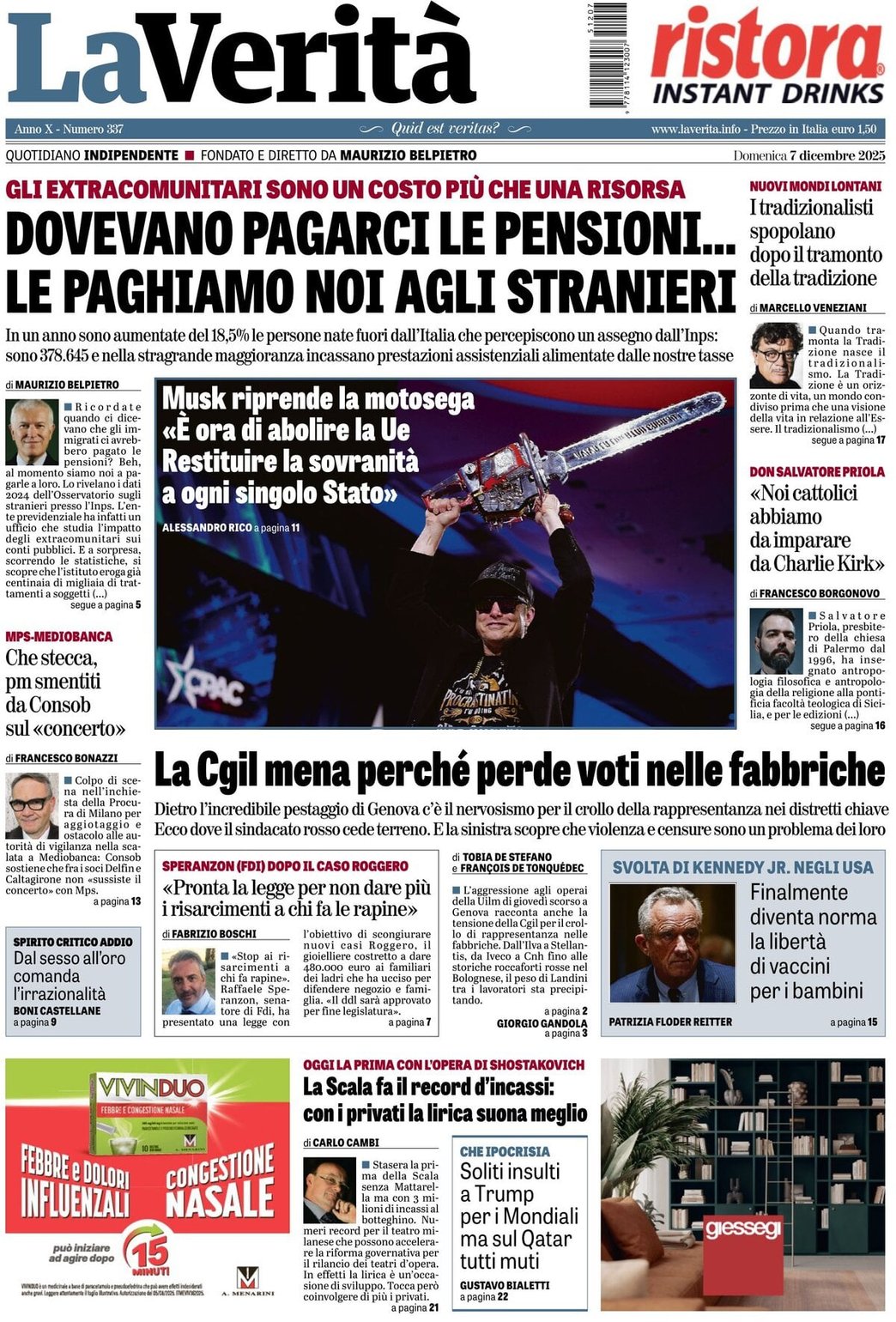I Titoli Principali da La Verita di oggi: