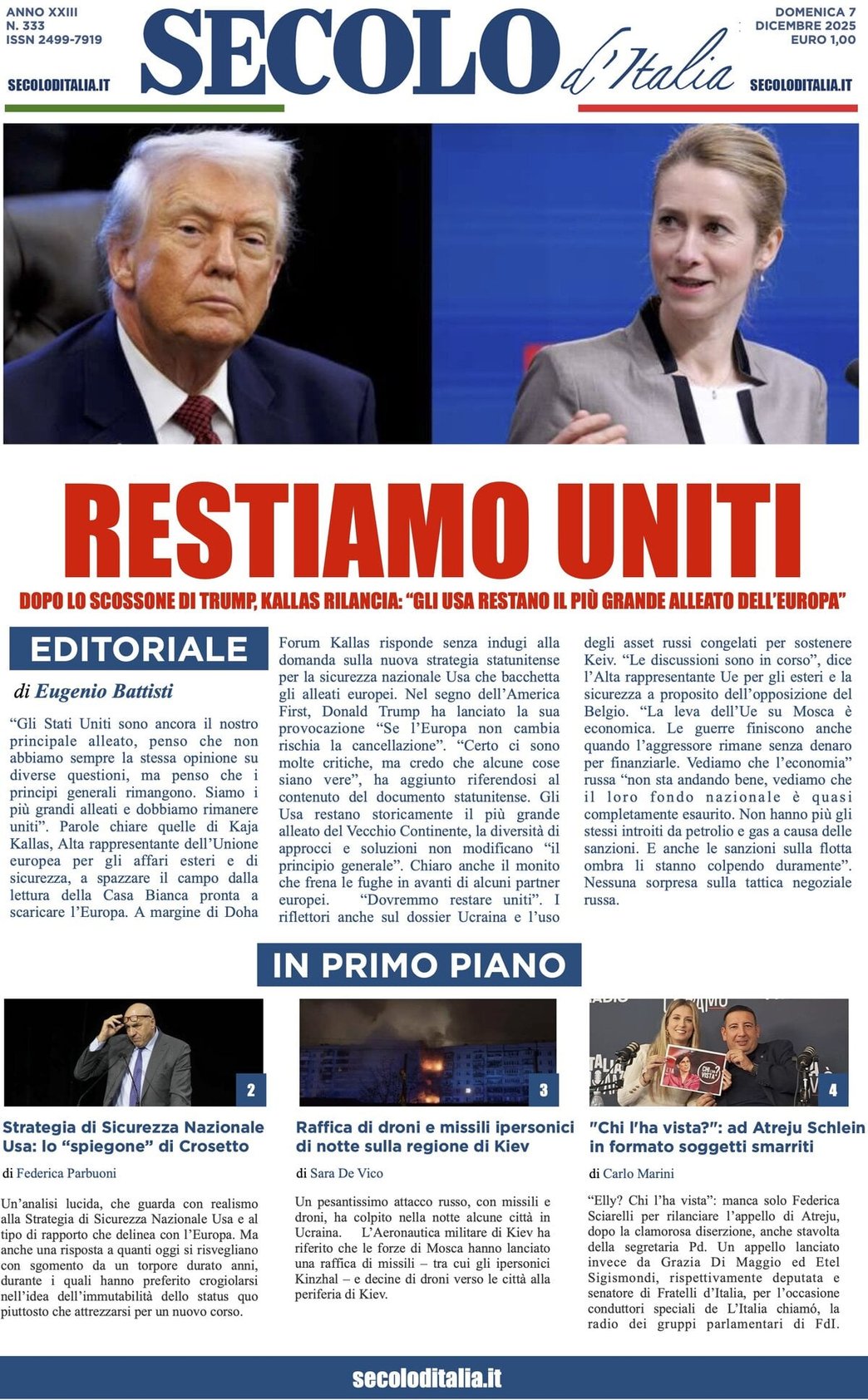 - RESTIAMO UNITI - DOPO LO SCOSSONE DI TRUMP, KALLAS RILANCIA: "GLI USA RESTANO IL PIÙ GRANDE ALLEATO DELL'EUROPA" – Eugenio Battisti