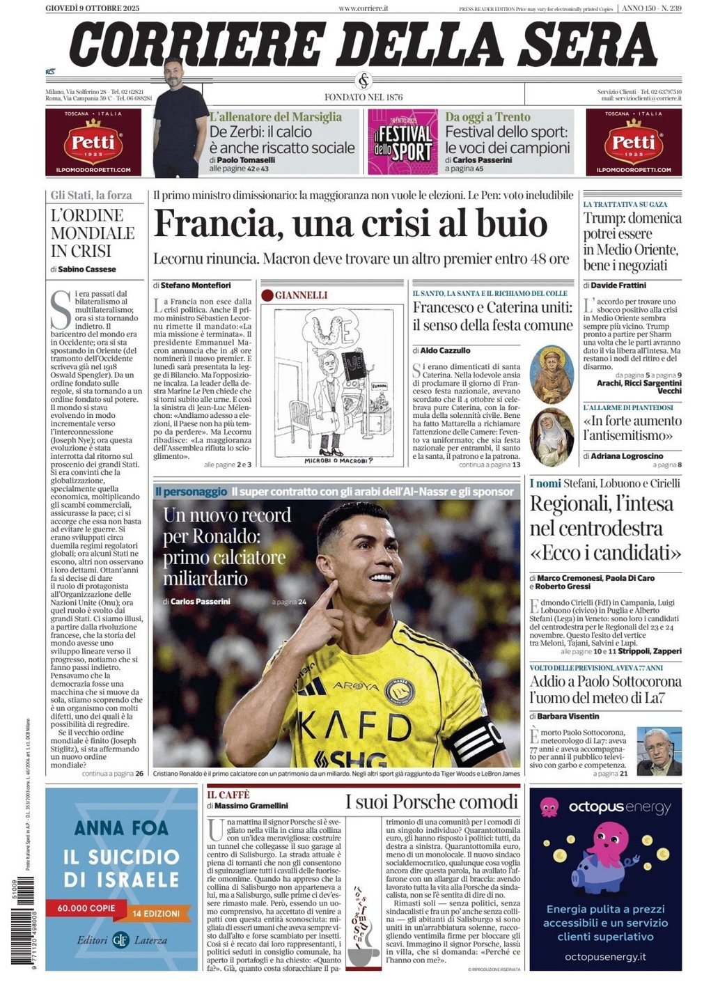 I Titoli Principali da Corriere della Sera di oggi: