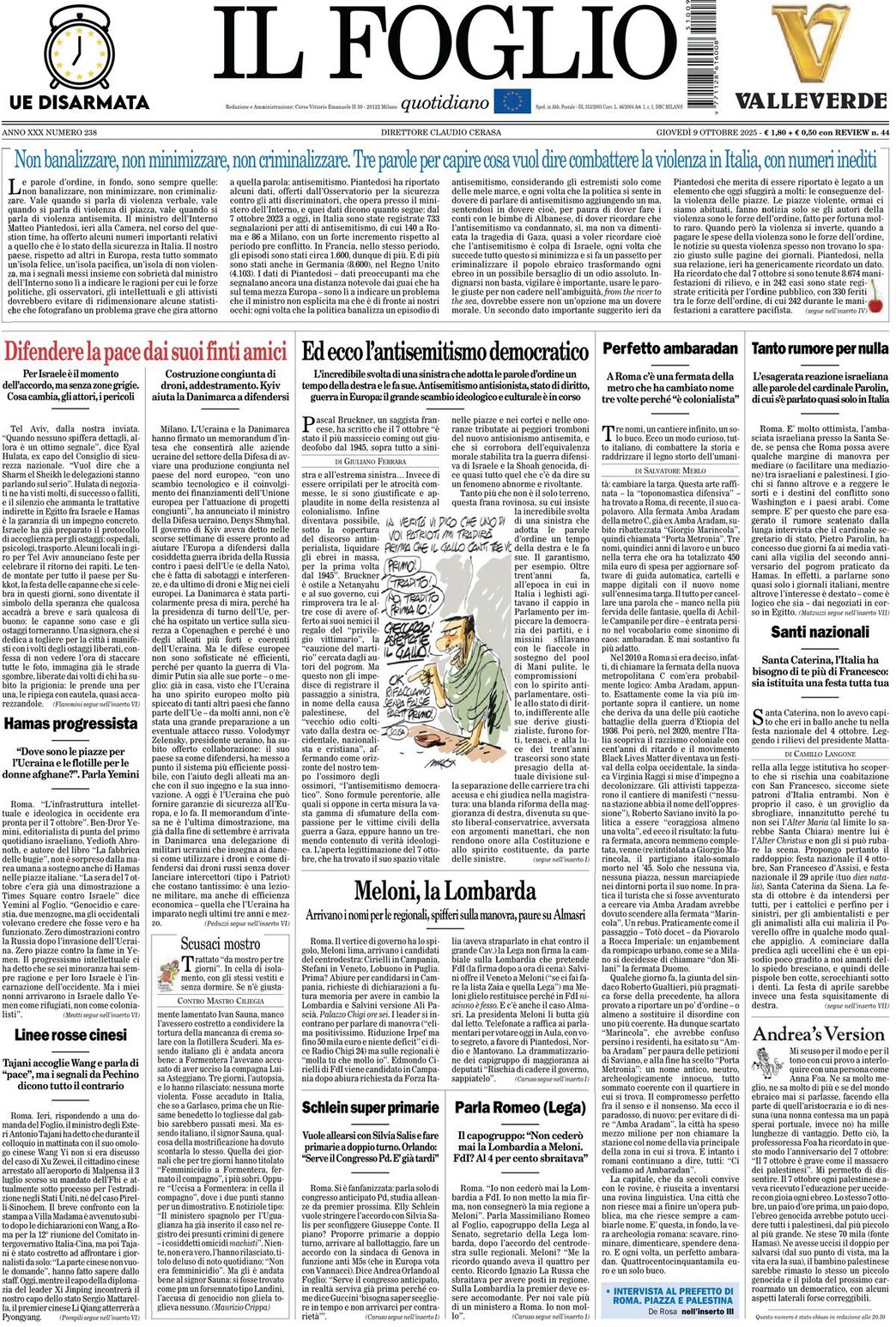 I Titoli Principali da Il Foglio di oggi: