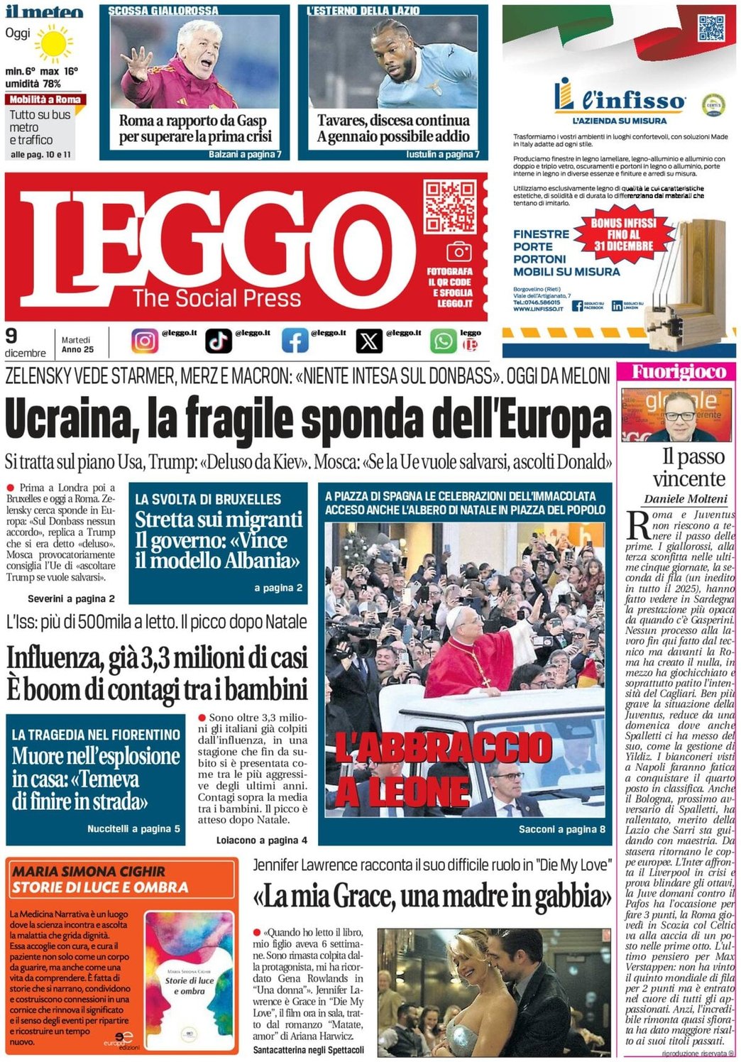 Prima Pagina Leggo di oggi, Martedì 9 Dicembre 2025