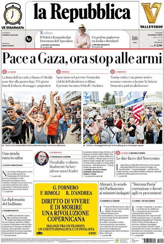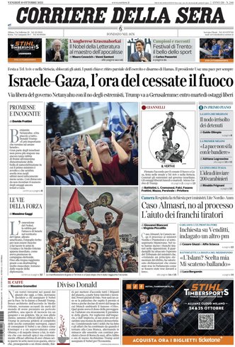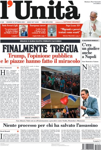 In una giornata cruciale segnata dalla firma storica di un accordo di pace tra Israele e Hamas, i quotidiani italiani raccontano con toni diversi un evento che molti sperano porrà fine a un conflitto durato oltre due anni e costato migliaia di vite. L’intesa, siglata a Sharm el-Sheikh, viene vista come un passo fondamentale verso la tregua e la liberazione imminente degli ostaggi, con Tel Aviv e Gaza in festa, mentre il ruolo determinante di Donald Trump viene esaltato e discusso in egual misura. Mentre alcune testate sottolineano l’importanza di questo cessate il fuoco come segno di speranza e futuro dialogo, altre mettono in guardia sui possibili rischi e sulle difficoltà di una pace duratura, evidenziando le spaccature interne alle leadership coinvolte. Il dibattito si estende oltre i confini del Medio Oriente, toccando la politica interna italiana, dove emergono tensioni tra le forze politiche e riflessioni sulle riforme economiche e sociali, tra rottamazioni fiscali, pensioni e questioni di giustizia. Sullo sfondo di queste notizie, non mancano le cronache di episodi drammatici di violenza domestica e un’attenzione alla crescita economica e culturale del Paese, con un omaggio al Nobel per la letteratura e un’analisi delle sfide globali che si intrecciano con le vicende locali. Così, le pagine dei giornali delineano una giornata intrisa di speranze, contrasti e fermenti, in attesa che la pace, finalmente annunciata, possa tradursi in realtà concreta.