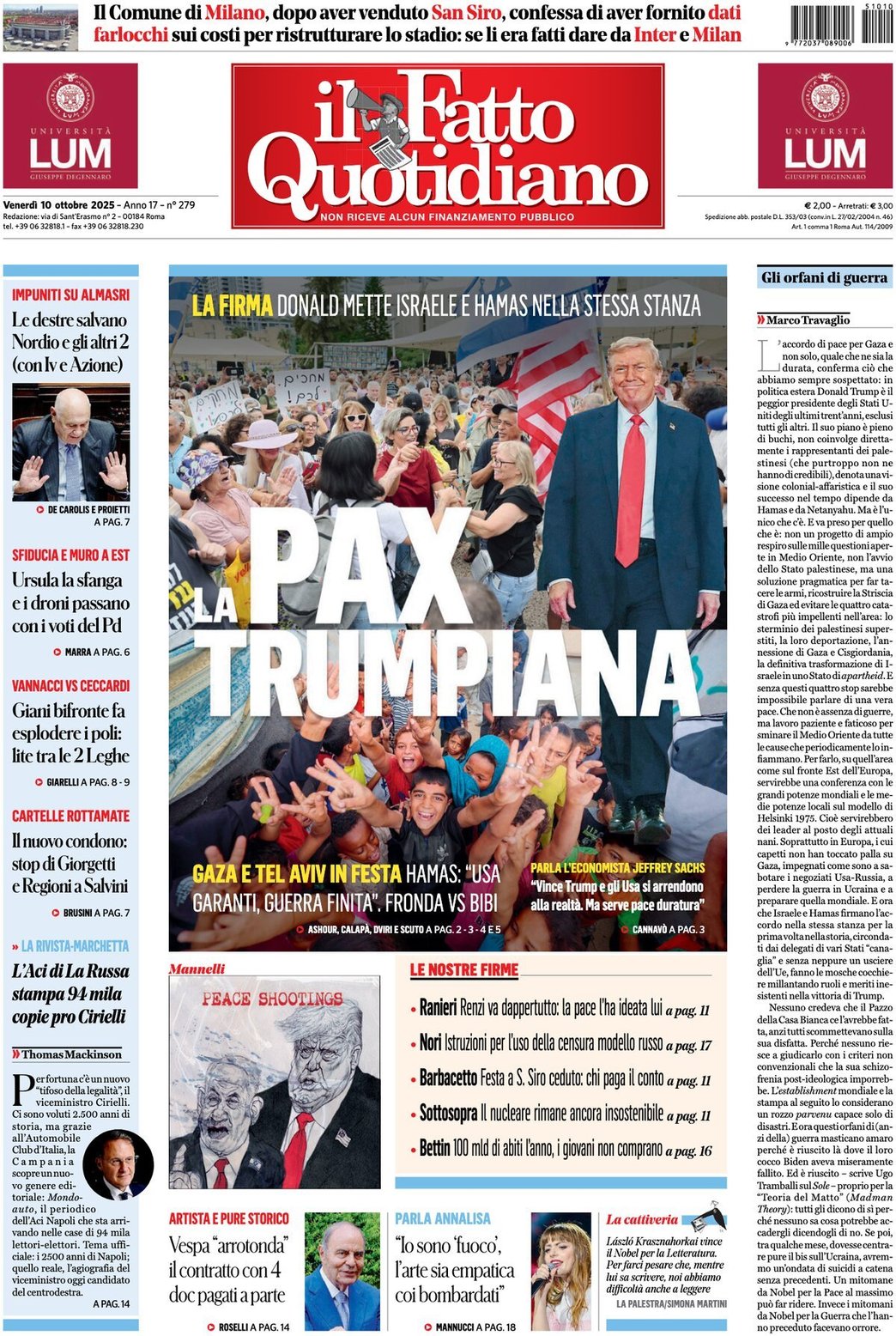 I Titoli Principali da Il Fatto Quotidiano di oggi: