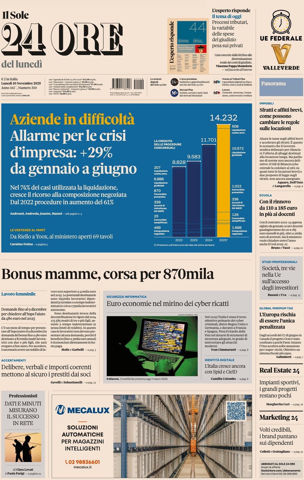 I Titoli Principali da Il Sole 24 Ore di oggi: