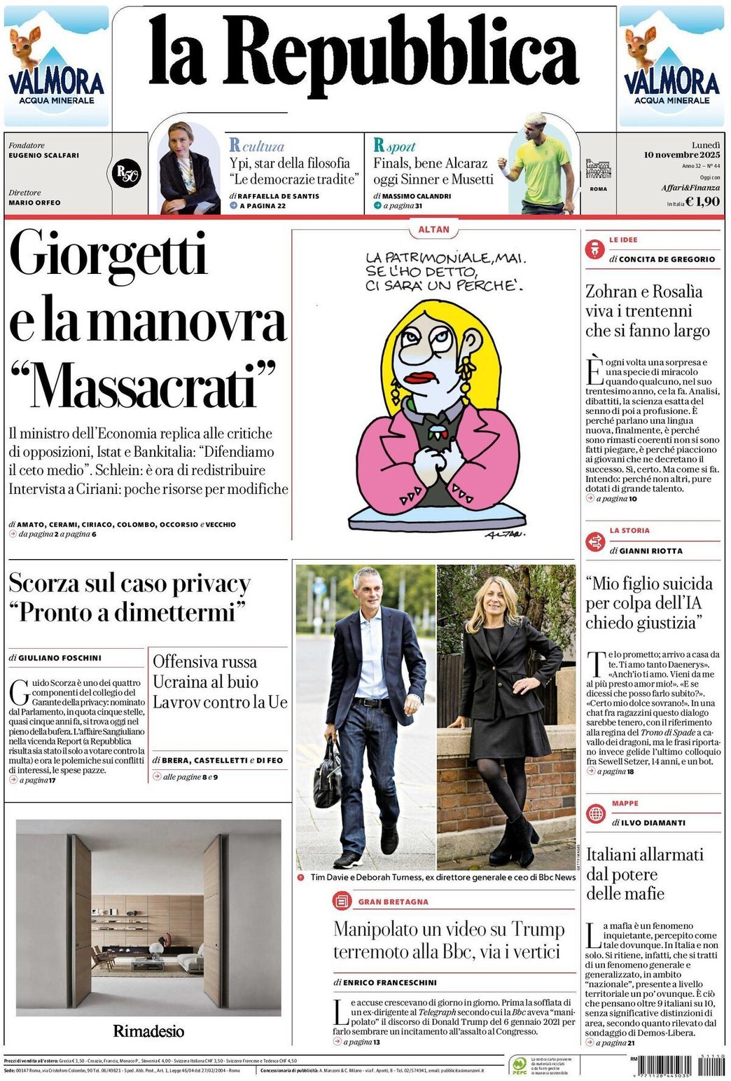 I Titoli Principali da La Repubblica di oggi: