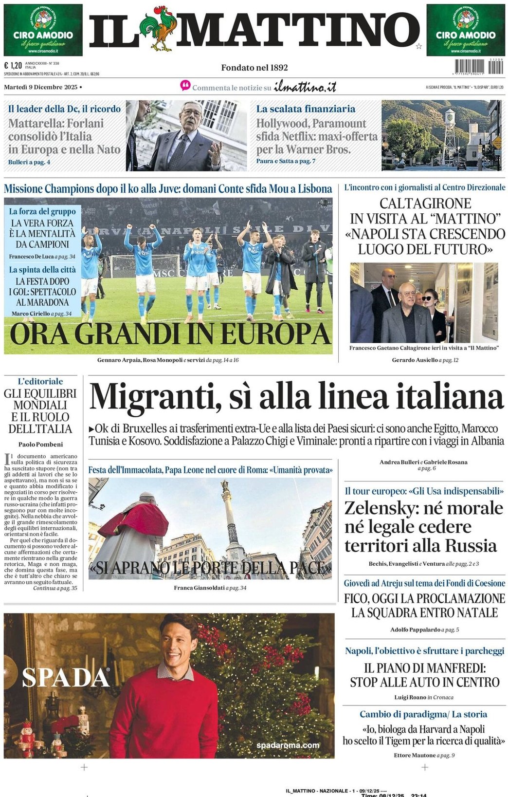 I Titoli Principali da Il Mattino di oggi: