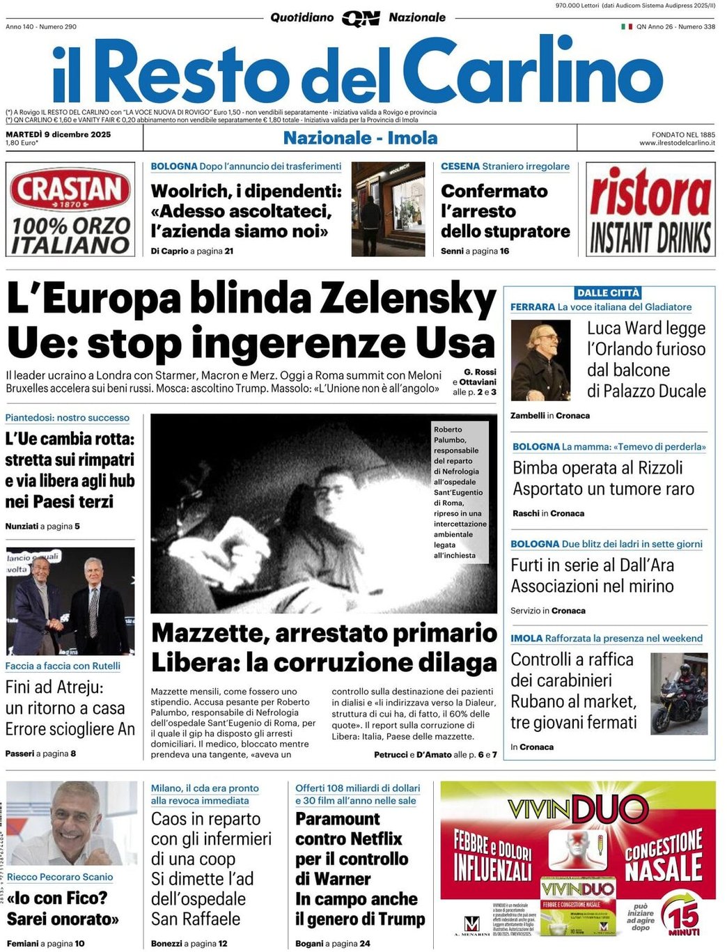 I Titoli Principali da Il Resto del Carlino di oggi: