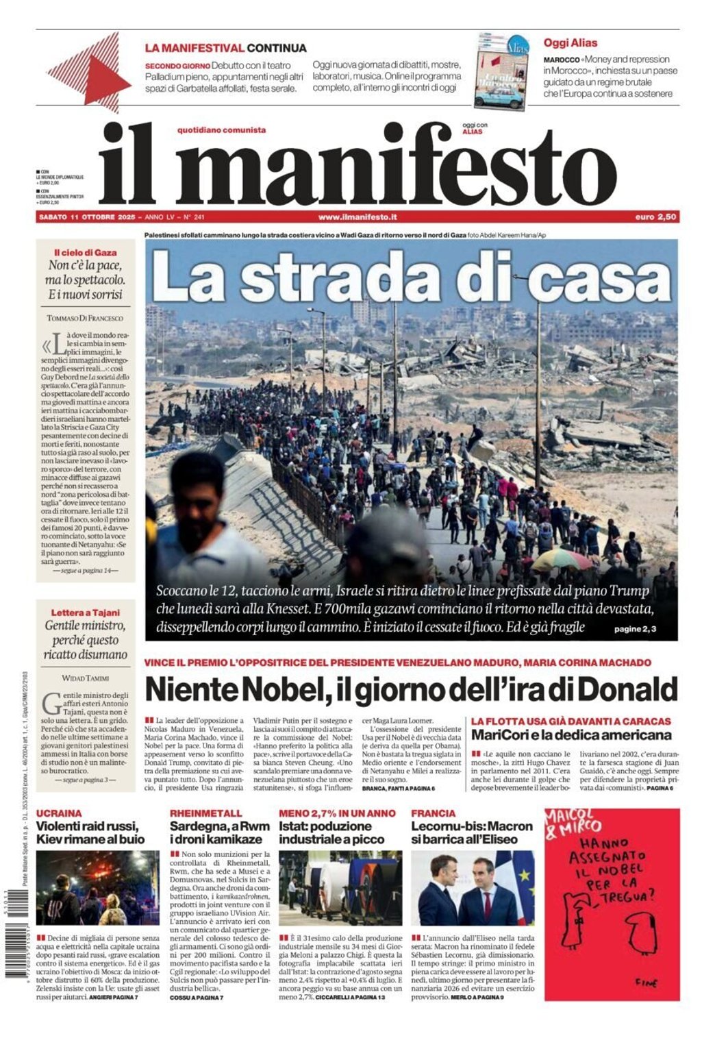 I Titoli Principali da Il Manifesto di oggi: