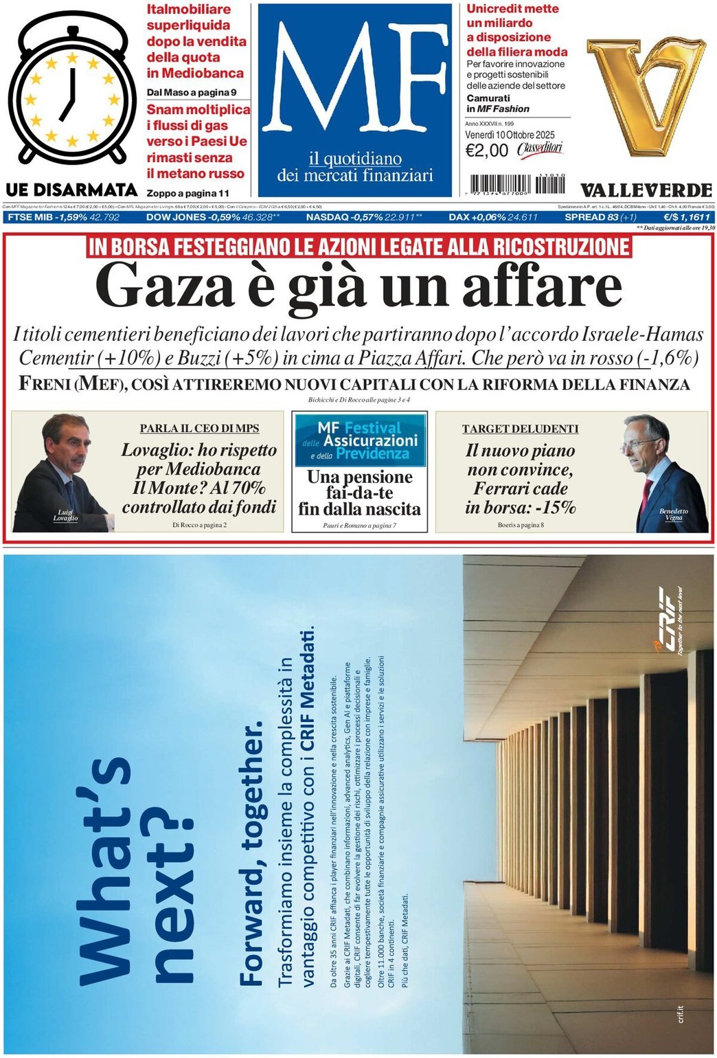 - Parla il CEO di IMPS - Lovaglio: ho rispetto per Mediobanca Il Monte? Al 70% controllato dai fondi