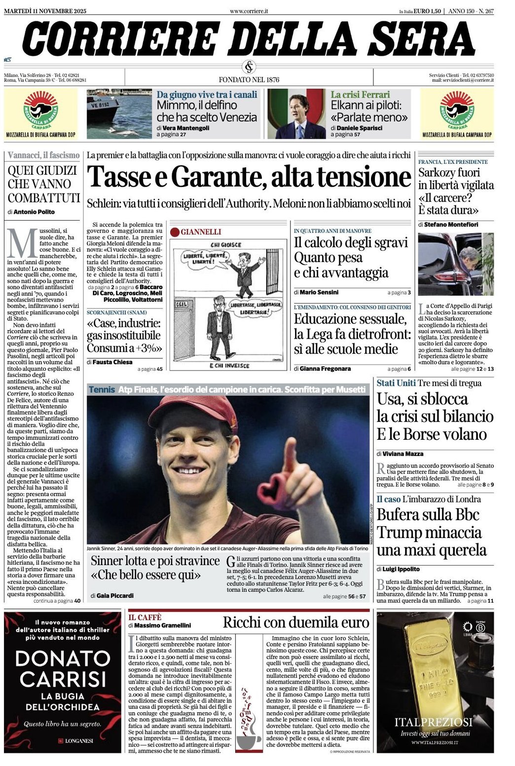 I Titoli Principali da Corriere della Sera di oggi: