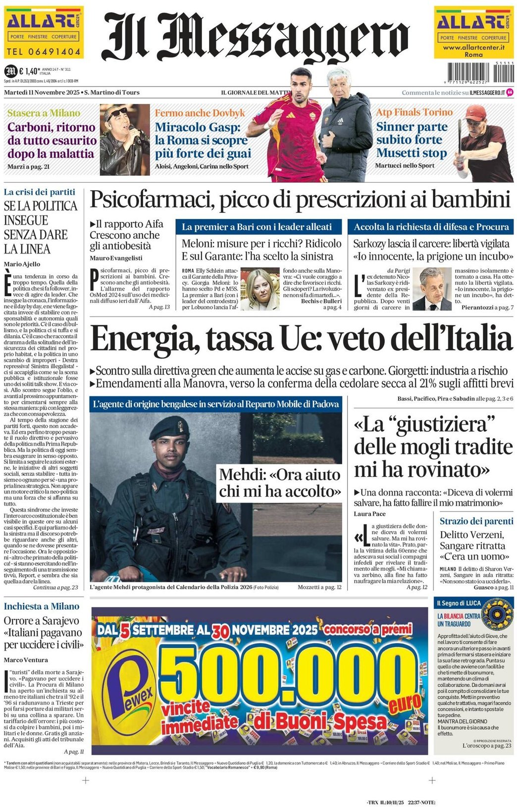 I Titoli Principali da Il Messaggero di oggi: