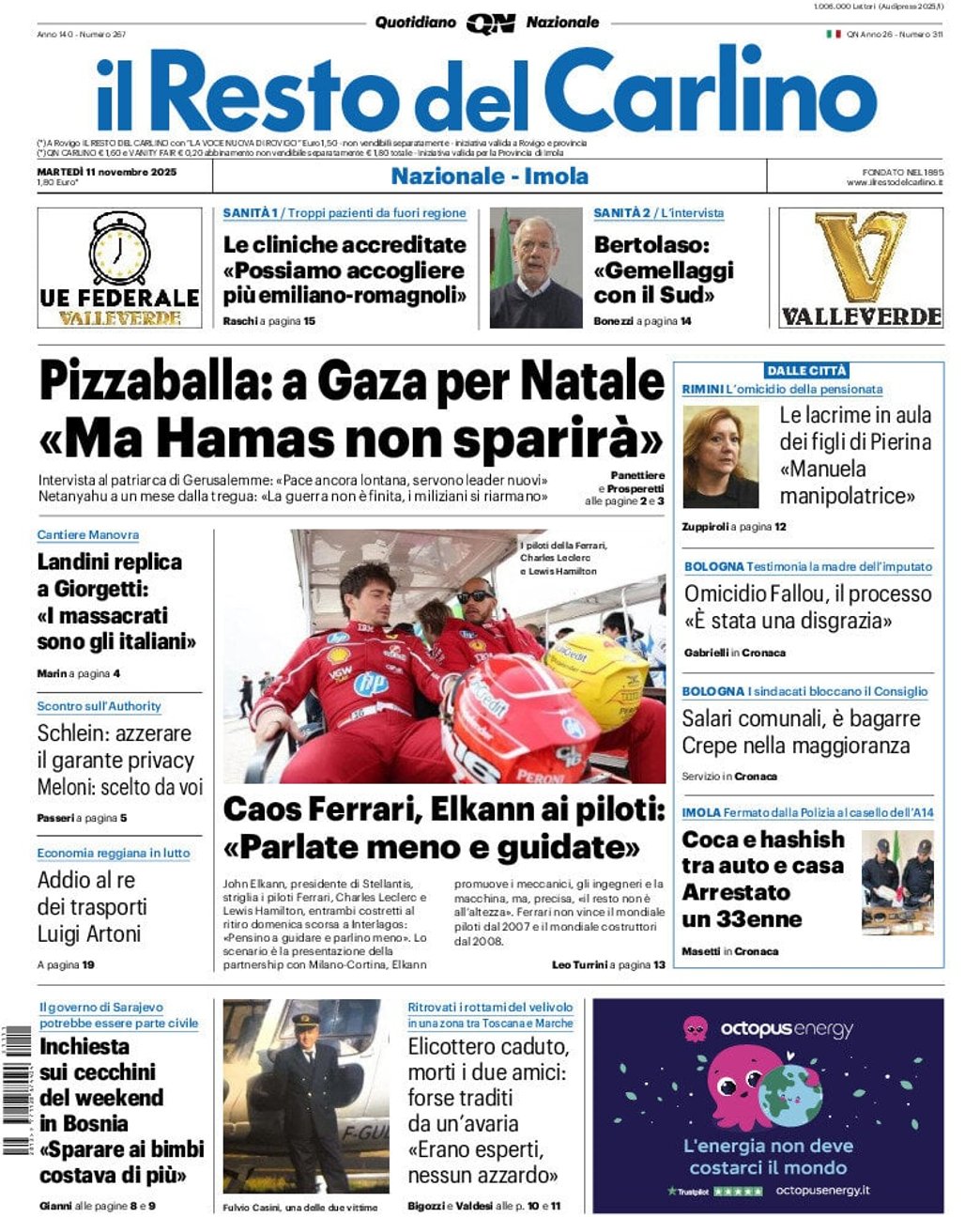 I Titoli Principali da Il Resto del Carlino di oggi: